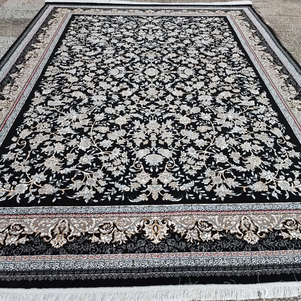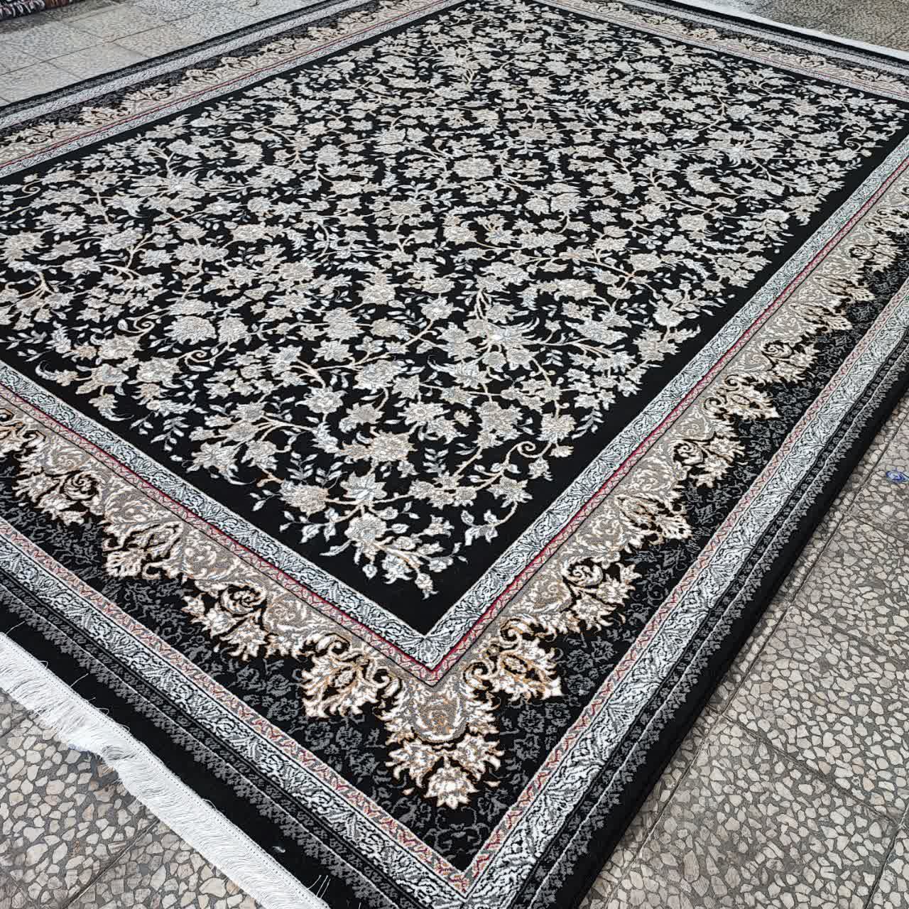 فرش 500 شانه طرح 700 شانه تراکم 1500 مدل آوا مشکی طلاکوب (ارسال رایگان)