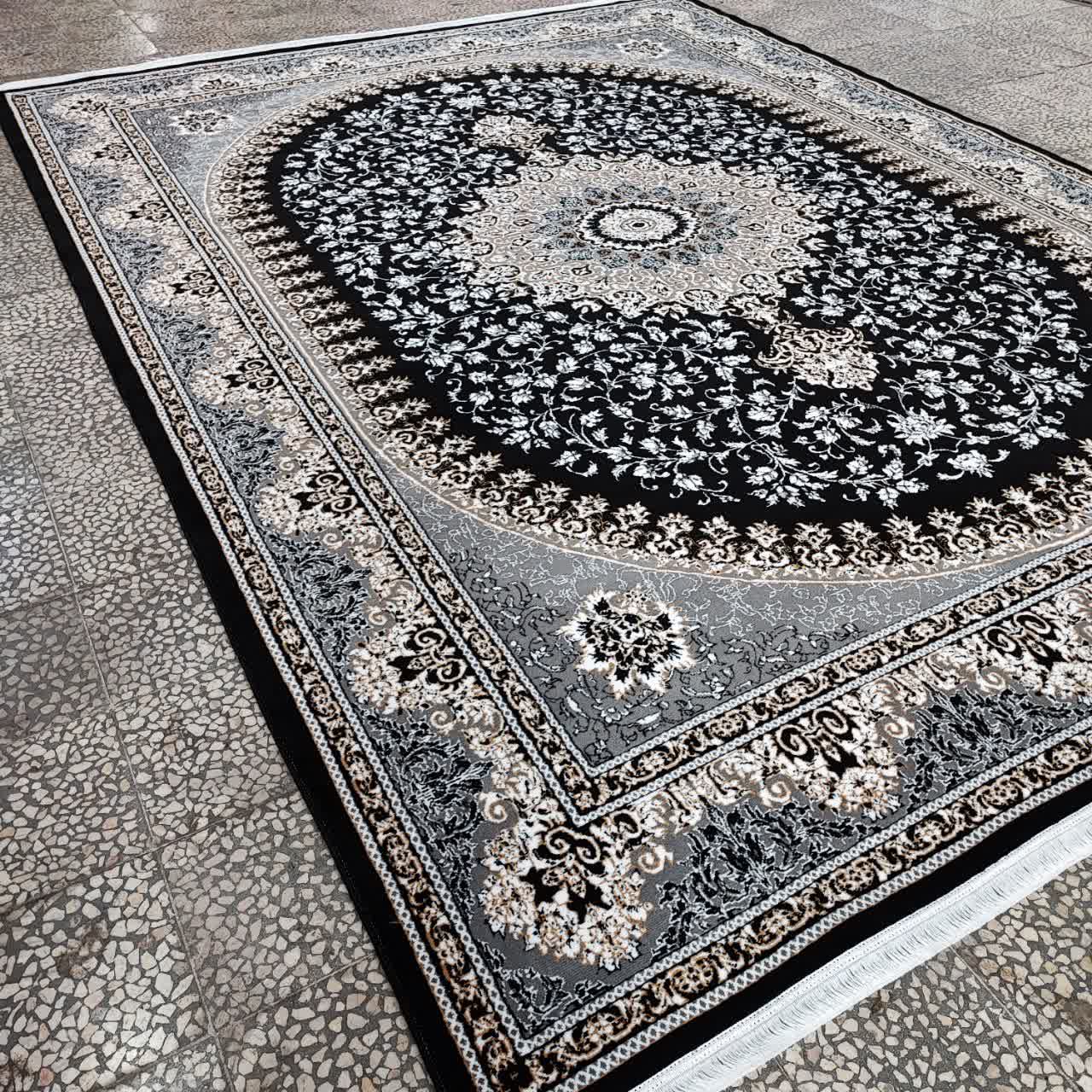 فرش 500 شانه طرح 700 شانه تراکم 1500 مدل آیناز مشکی (ارسال رایگان)
