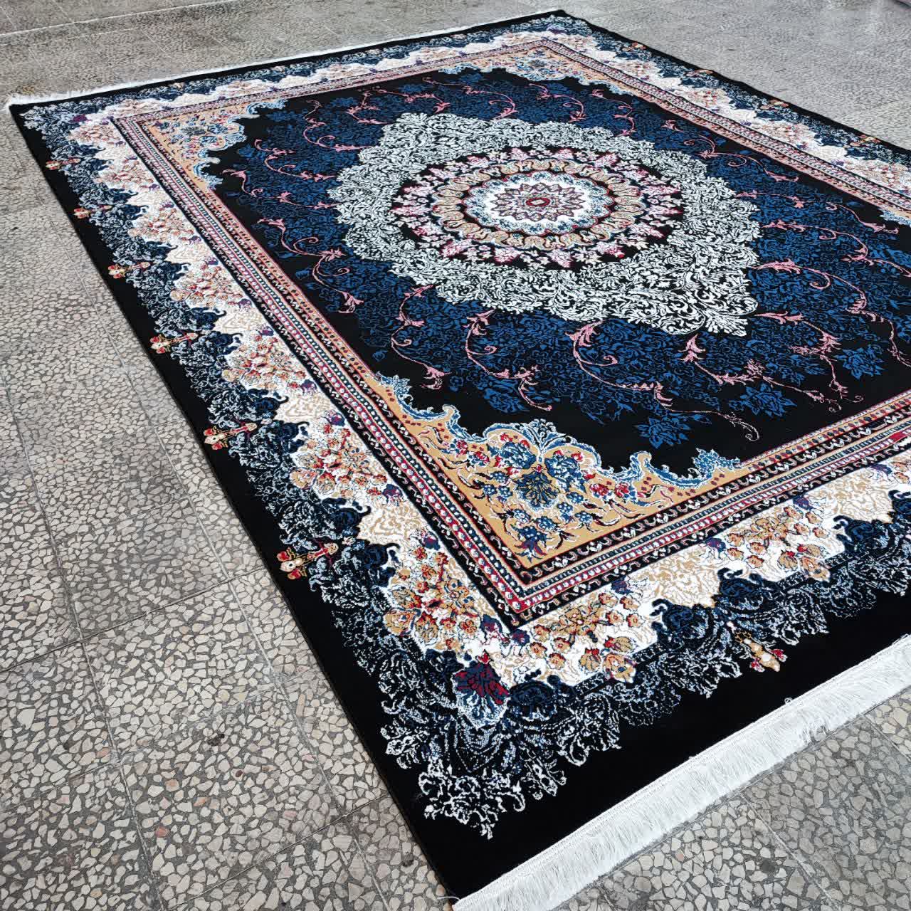 فرش 500 شانه طرح 700 شانه تراکم 1500 مدل دلاریس سورمه ای(ارسال رایگان)