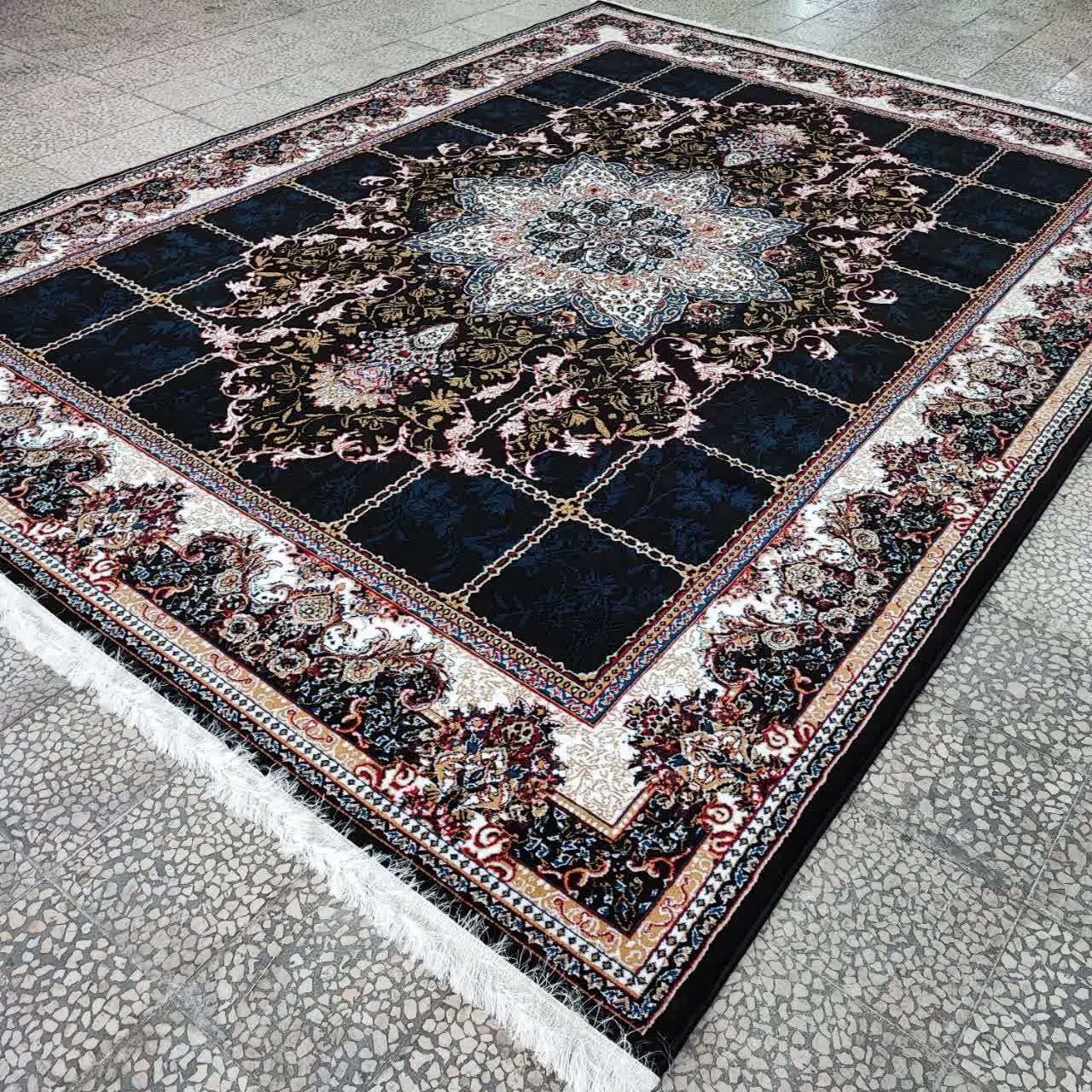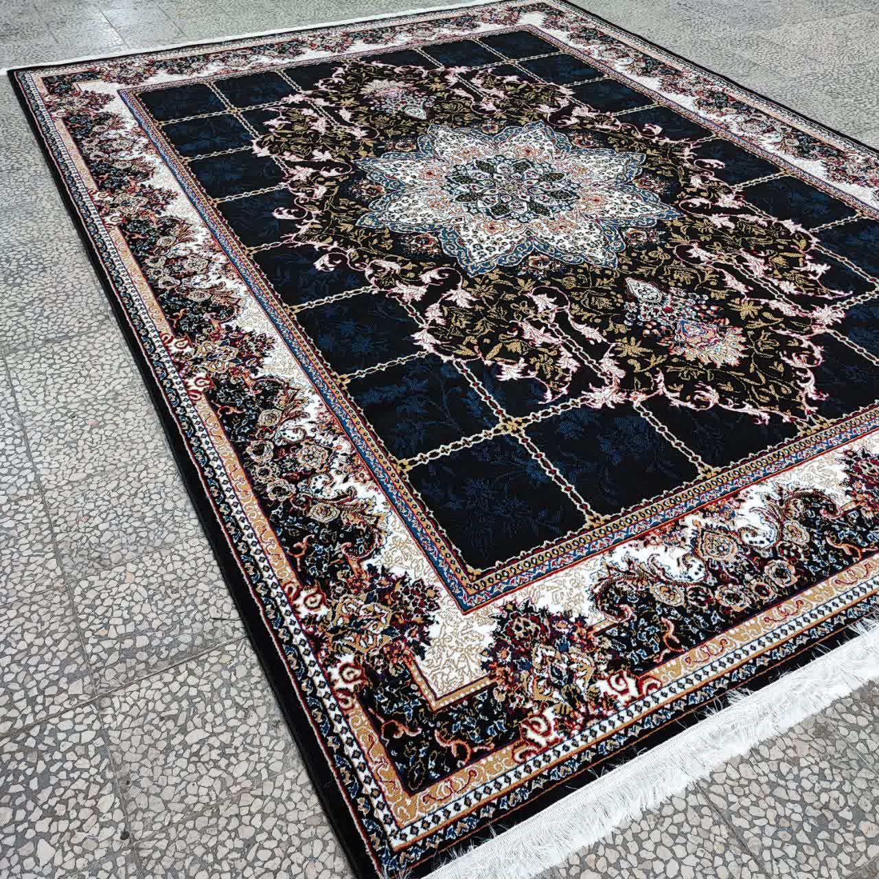 فرش 500 شانه طرح 700 شانه تراکم 1500 مدل هیوا مشکی(ارسال رایگان)
