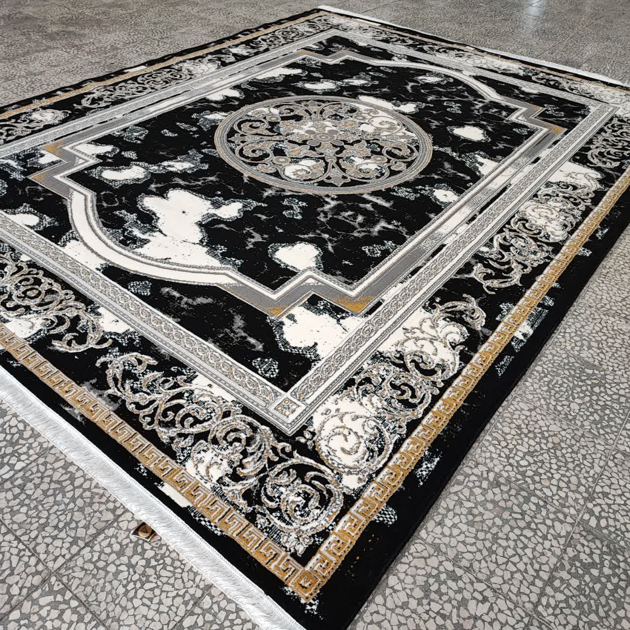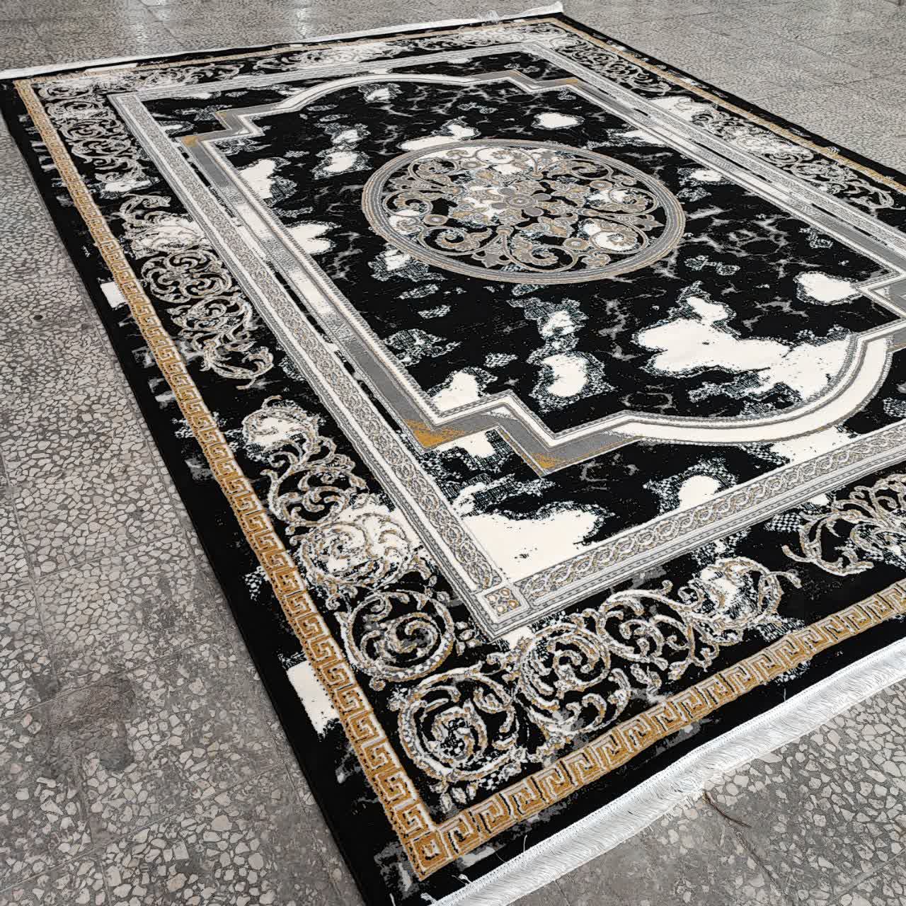 فرش 500 شانه طرح 700 شانه تراکم 1500 مدل ایتالیا مشکی (ارسال رایگان)