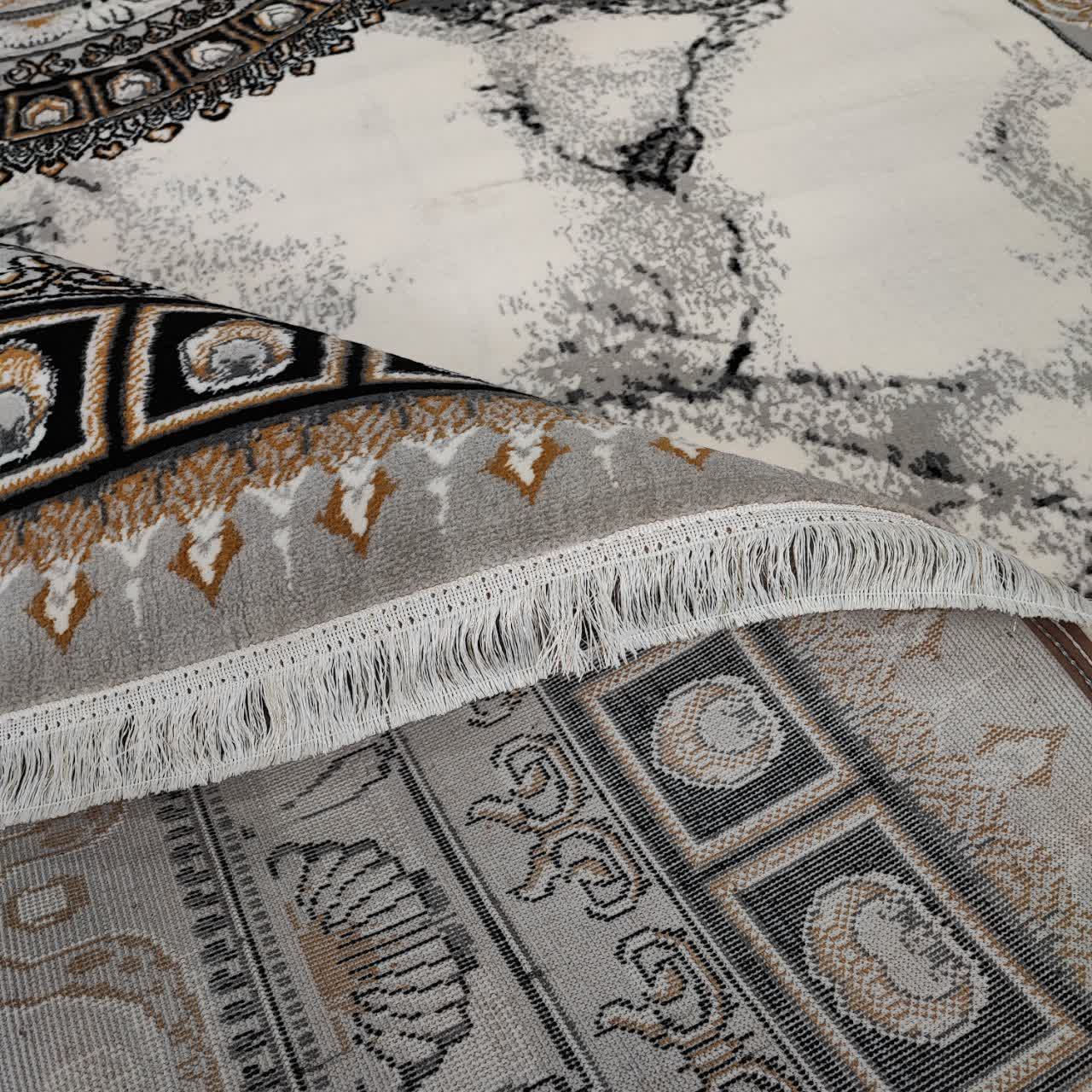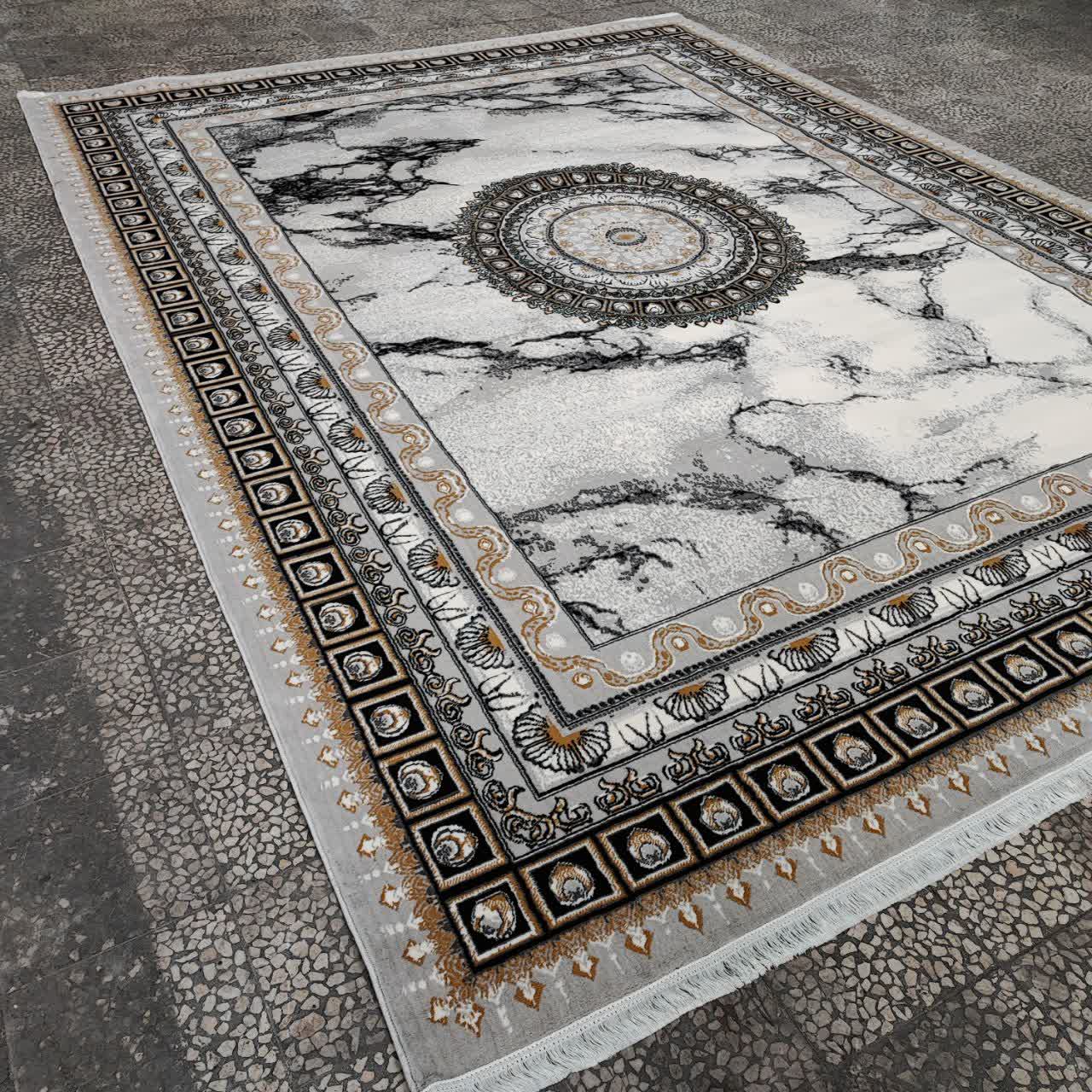فرش نقره ای زیبا با قیمت پایین و بافتی شبیه به دستبافت