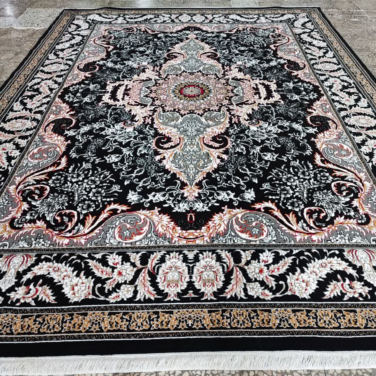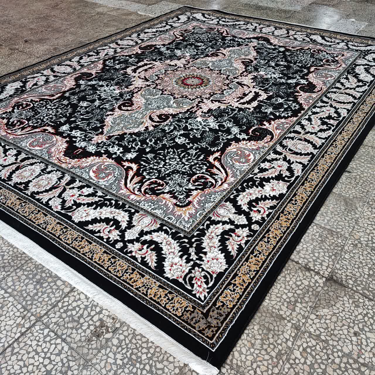 فرش 500 شانه طرح 700 شانه تراکم 1500 مدل تارا مشکی (ارسال رایگان)